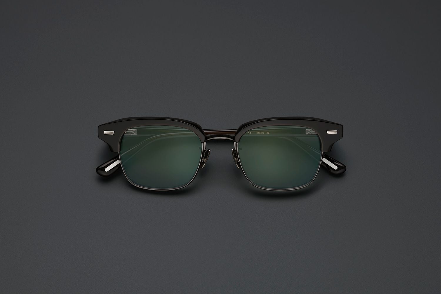 10mm厚のアセテートから削り出しエッジを効かせたブローパーツ、4.5mm厚の丸みあるメタルリムが相反する互いの質感を際立たせ、洗練された造形美を表現しています。