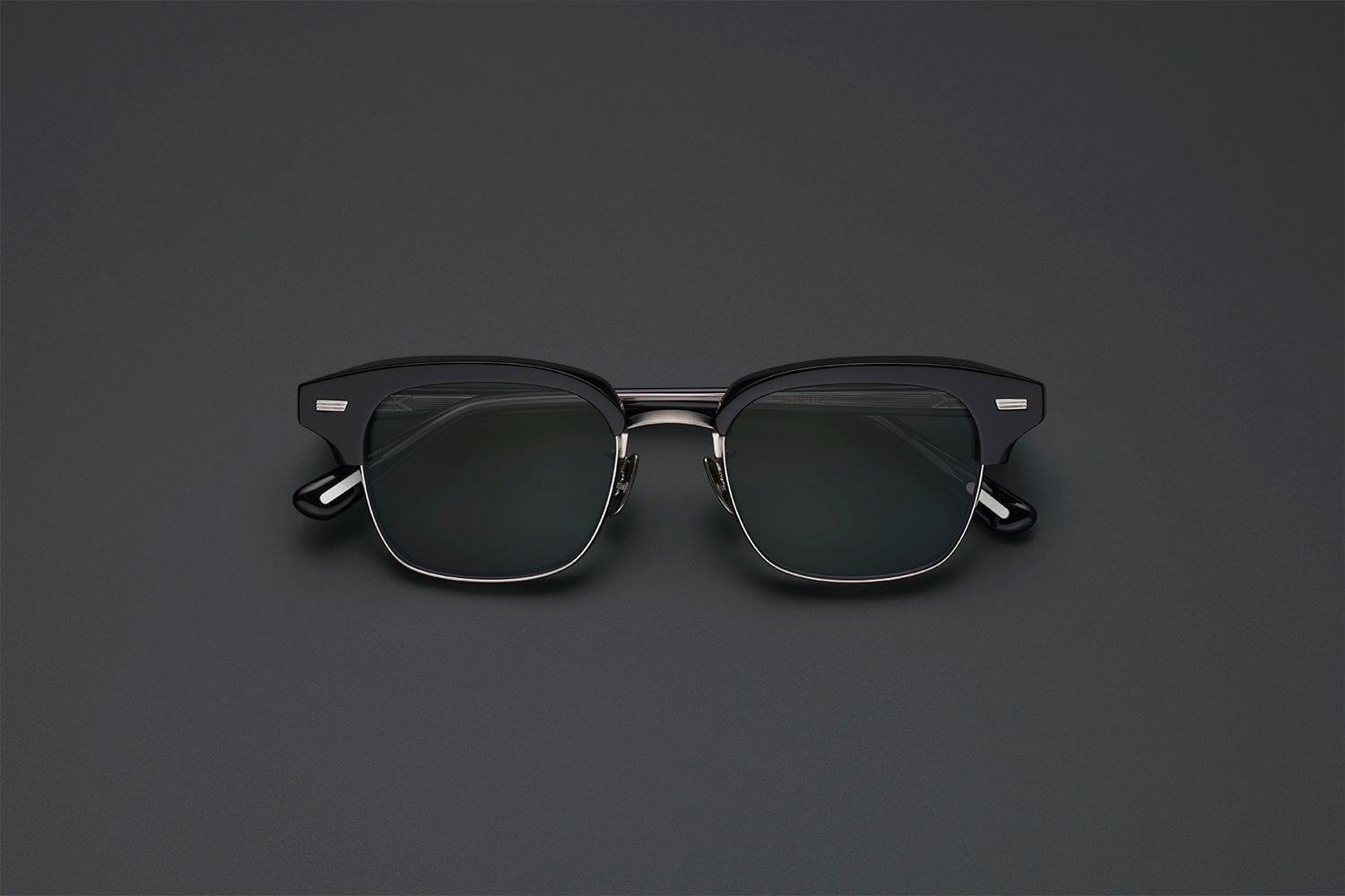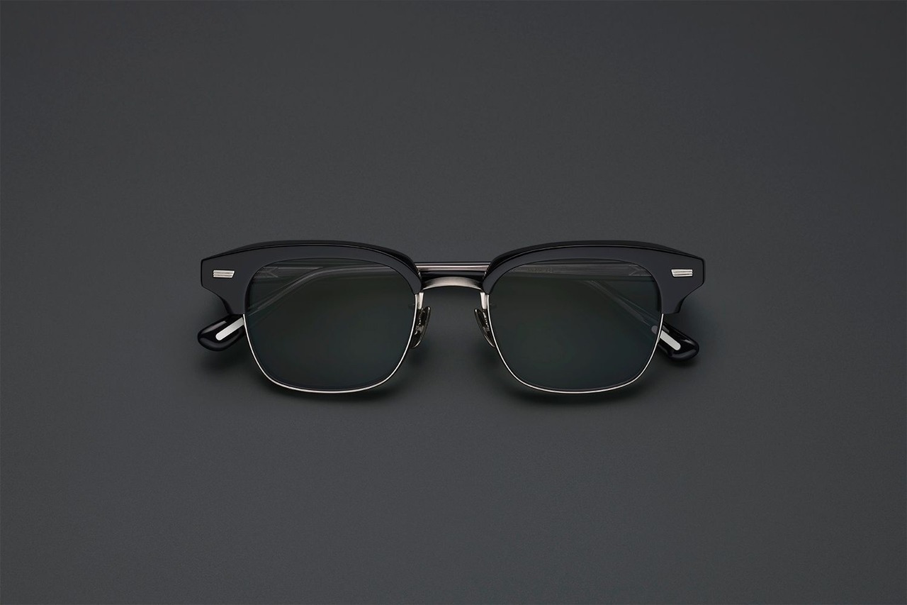 10mm厚のアセテートから削り出しエッジを効かせたブローパーツ、4.5mm厚の丸みあるメタルリムが相反する互いの質感を際立たせ、洗練された造形美を表現しています。